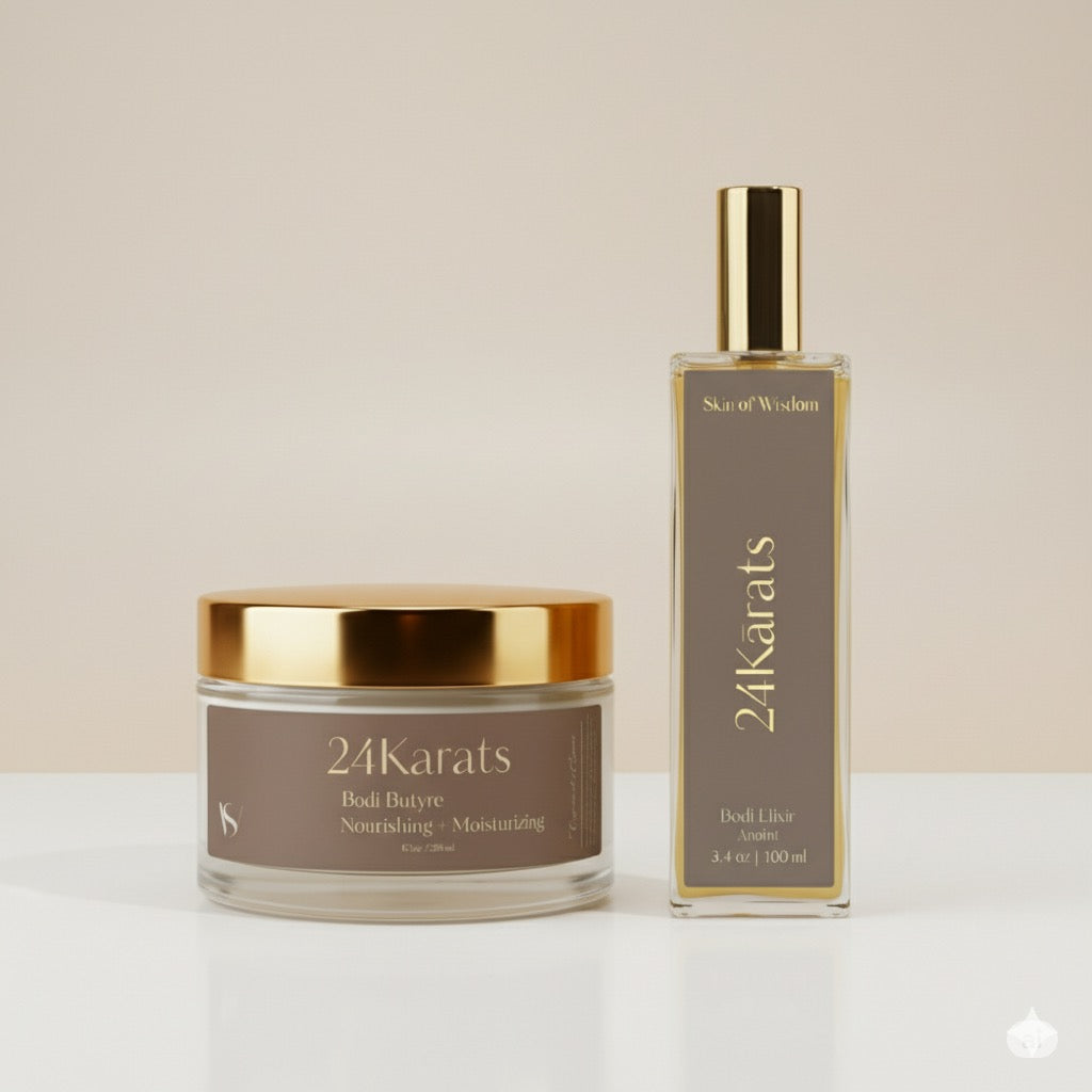 This luxe set delivers moisture with a high-end touch. The 24Karats Bodi Elixir glides on effortlessly, locking in moisture with a lightweight, silky feel. Follow with the rich Butyre to seal in softness that lasts all day.